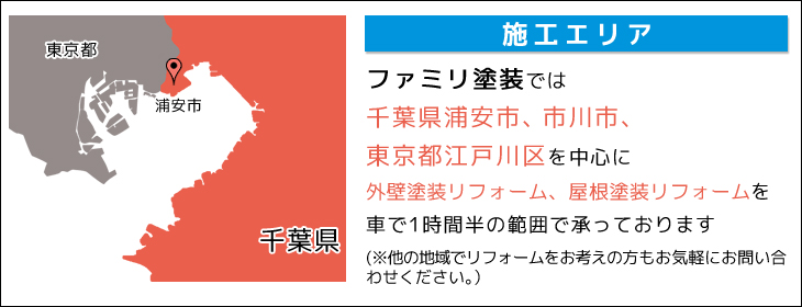 ホームページをご覧いただきありがとうございます。ファミリ塗装、店長の大石信一郎と申します。ファミリ塗装は地元浦安市の皆様の住まいを守る外壁屋根塗装店です。私たちは「家族が長く、幸せに暮らせるための塗装」をご提案しています。 ただ塗装するだけならどこの業者でもできます。ただ、大切な家族が長く幸せに暮らせる住まいにするには、気を付けるポイントはいくつもあります。そのポイントをしっかりと把握できていないと損することもあるのです。 まずはファミリ塗装にお悩みをご相談ください!お悩みにあった、最適なリフォームをご提案します! |