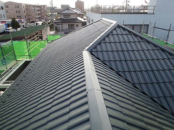 | 塗膜のはがれが目立っていた瓦も綺麗になりました。 | ローラーで時間をかけ丁寧に仕上げた外壁です。塗り残しもなく綺麗に仕上がっています。 |