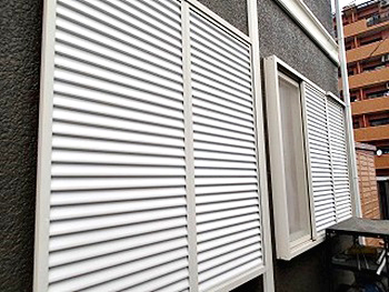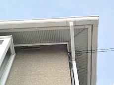 | 軒樋や竪樋はペーパー掛けを行った後、ウレタン樹脂塗料を2回塗り仕上げました。 | 吹き付けで仕上げた戸袋と雨戸もムラが残ることなく、綺麗に仕上がりました。 |
