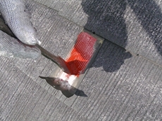 | まず、既存のタスペーサーをケレンします。 | 金属部に錆止めを塗布します。 | 下塗り後に最近は標準仕様の様になったタスペーサーを取り付けます。 |