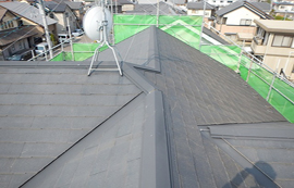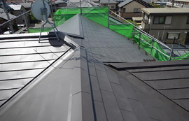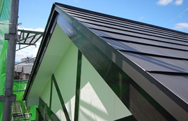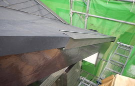 | ケラバ・谷樋 施工完了 | 鼻隠し 施工完了 | 棟押さえ板金 施工完了 |
